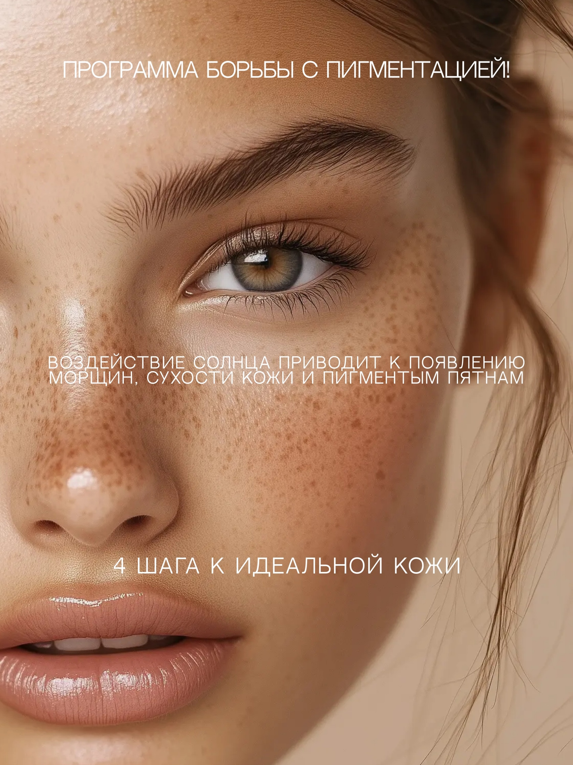 Программа применяется для избавления от гиперпигментации, для улучшения цвета и выравнивания тона кожи.